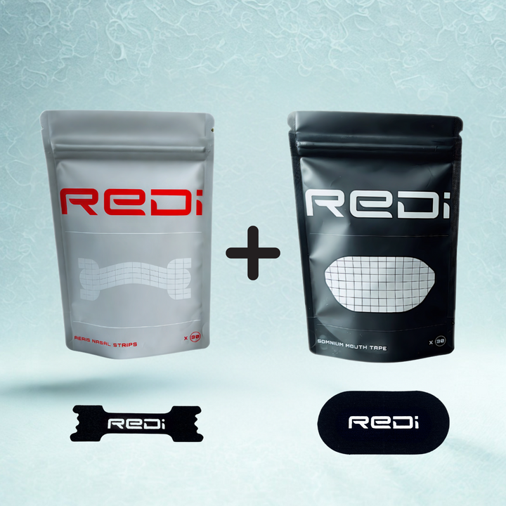 Optimise every breath—day and night—with the REDi AERIS Nasal Strips + REDi SOMNIUM Mouth Tape combo.